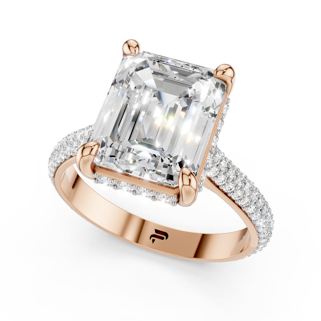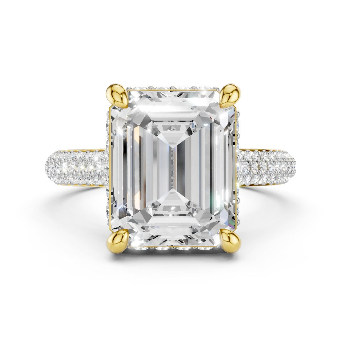 Emerald Cut Moissanite Pave Engagement Ring | Statement Four-Prong Setting