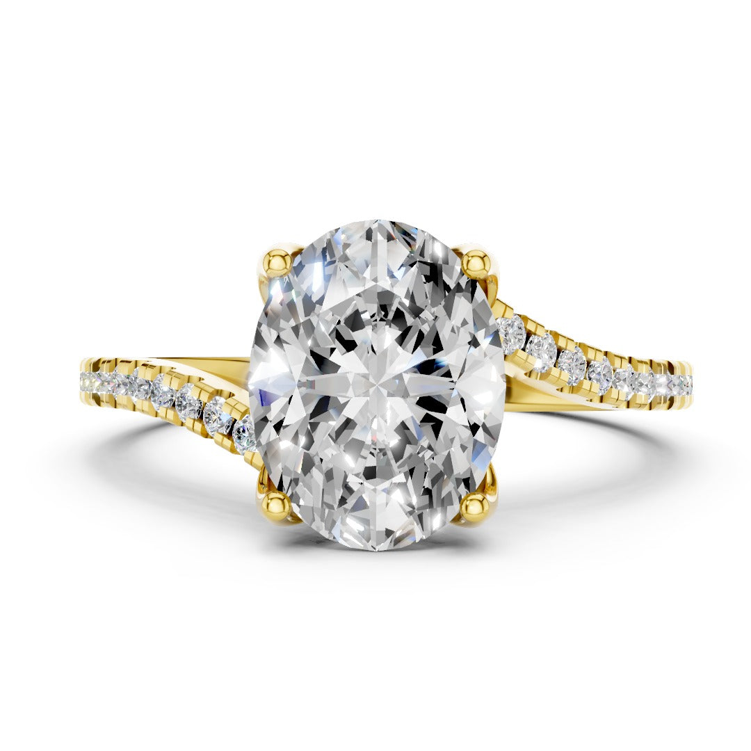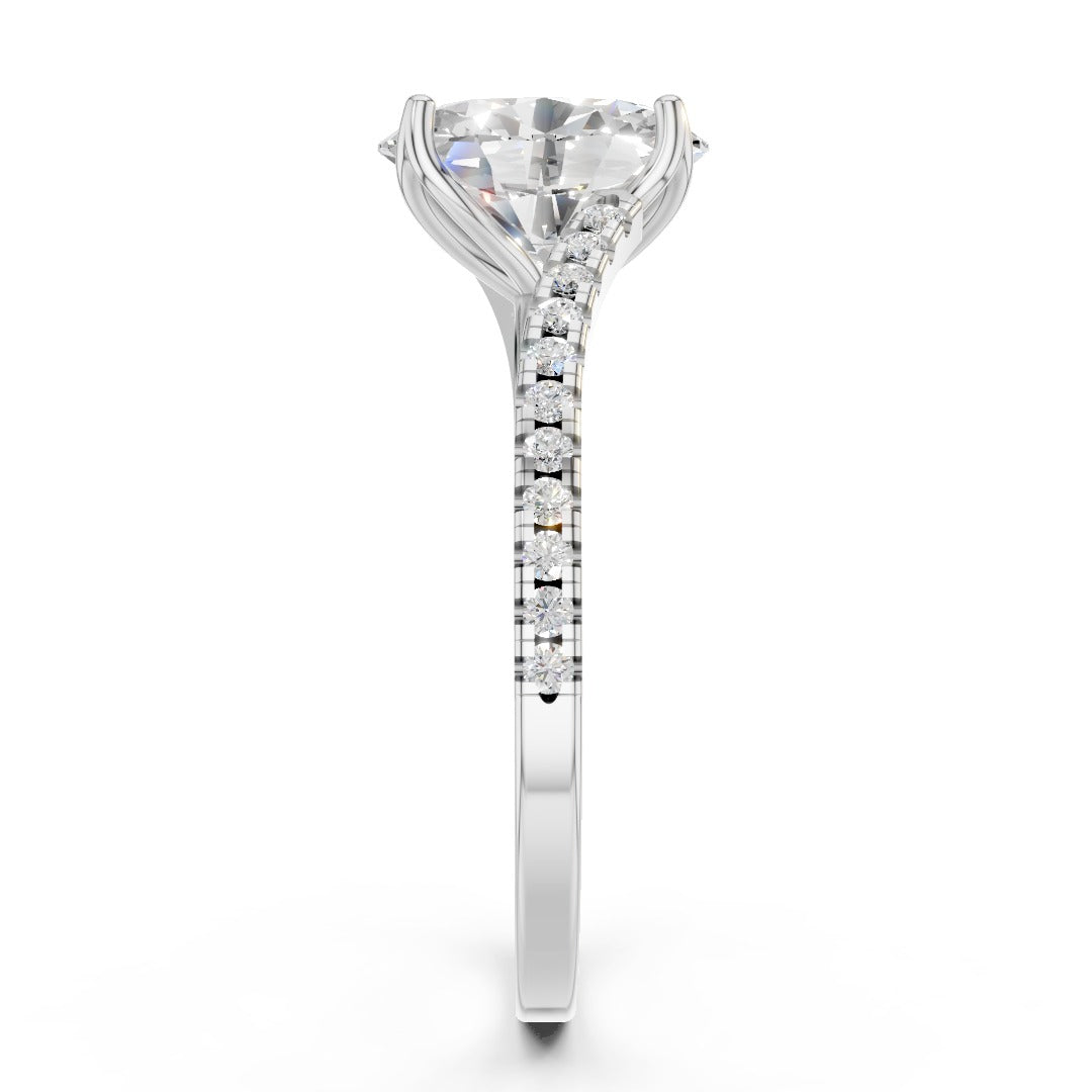Oval Moissanite Pavé Engagement Ring - Sterling Silver 925 Wedding & Anniversary Band