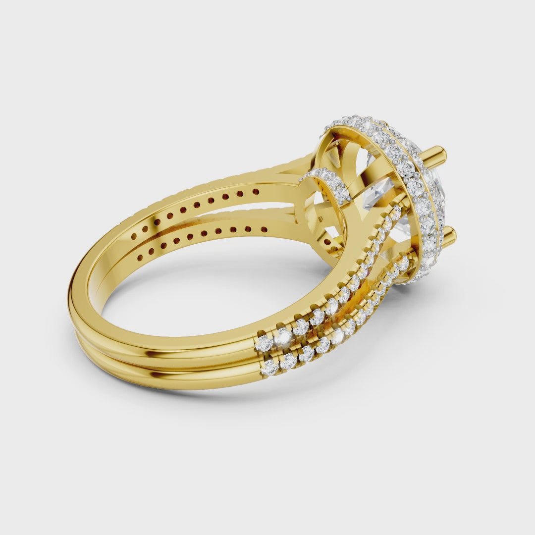 The Ultimate Sparkle: Double Halo Split Shank Moissanite Ring