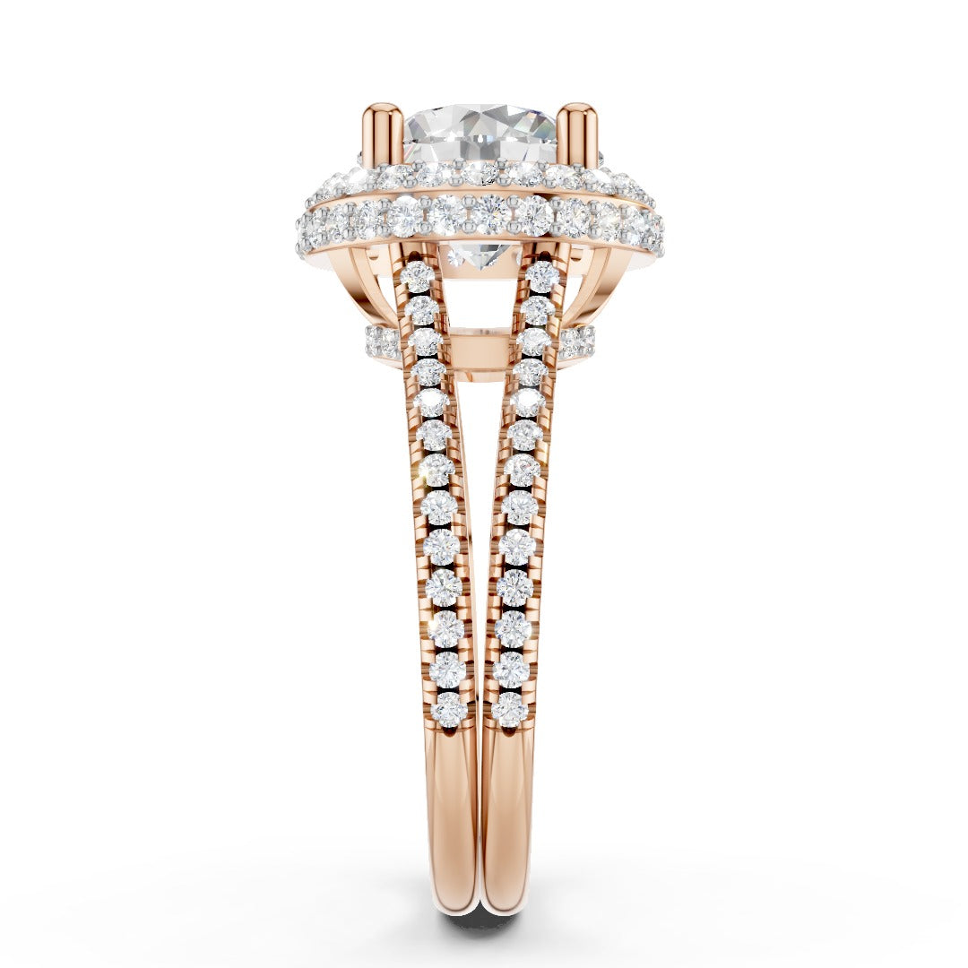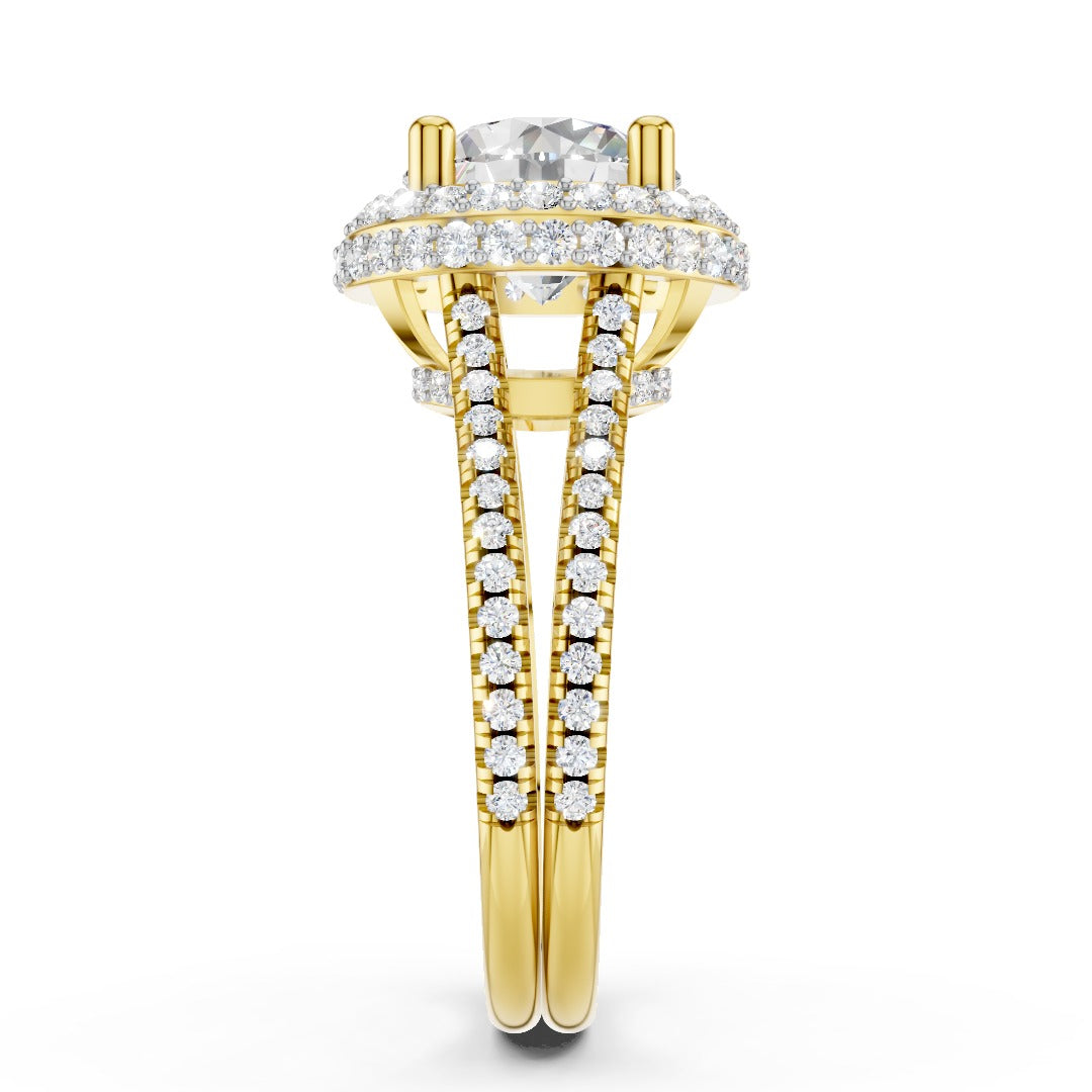 Round Moissanite Double Halo Split Shank Engagement Ring